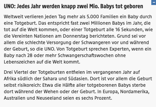 Schon heute hat der ORF eine UNO-Meldung zu Totgeburten gebracht.