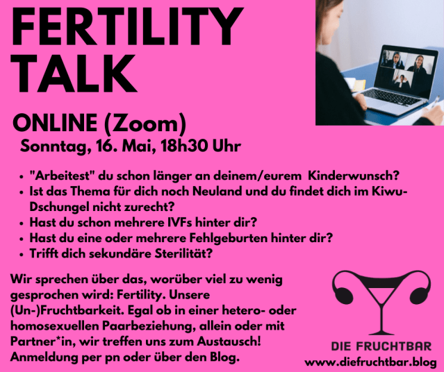 Nächsten Sonntag, 16. Mai, 18h30 findet der nächste Fertility Talk statt!