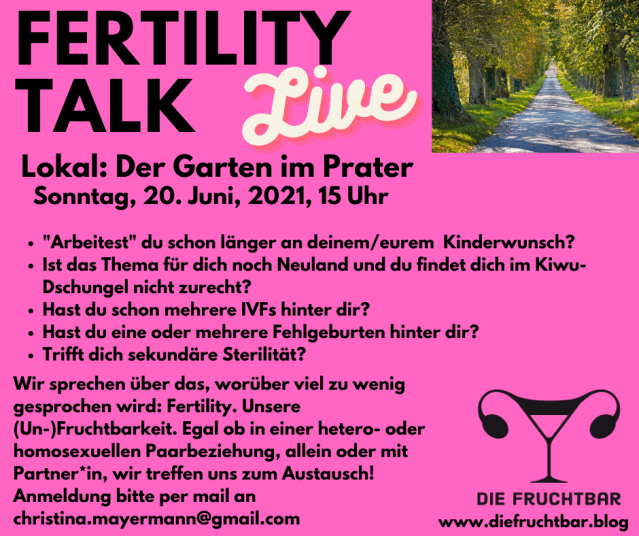 Der Fertility Talk findet wieder statt – diesmal live! Ich freue mich auf ein Kennenlernen in 3D!! 🤩Wo? Prater, Lokal Der Garten. Wann? Nächsten Sonntag, 15h. Um Anmeldung wird gebeten – am liebsten gleich an christina.mayermann@gmail.com